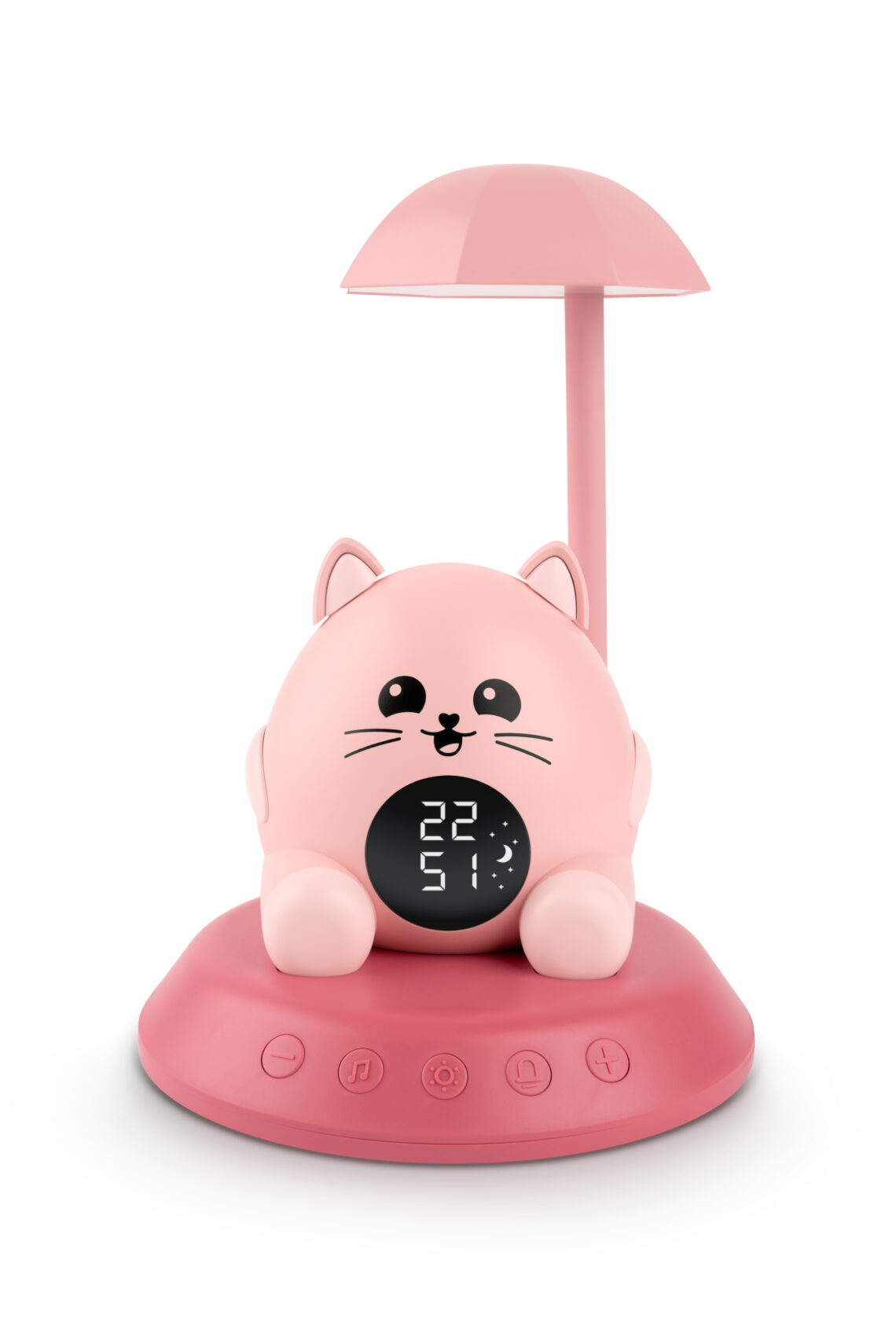 -Offrez à votre enfant un réveil aussi enchanteur que rassurant ! Avec son design adorable en forme de chat s'abritant sous son parapluie, ce réveil original transforme chaque matin en un moment magique. La fonction veilleuse musicale emporte votre enfant dans un moment doux et relaxant à chaque coucher. -
